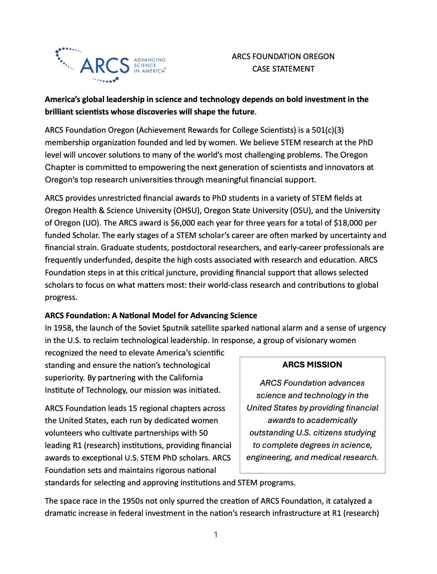 CLICK ON THE IMAGE TO READ OREGON CHAPTER'S CASE STATEMENT