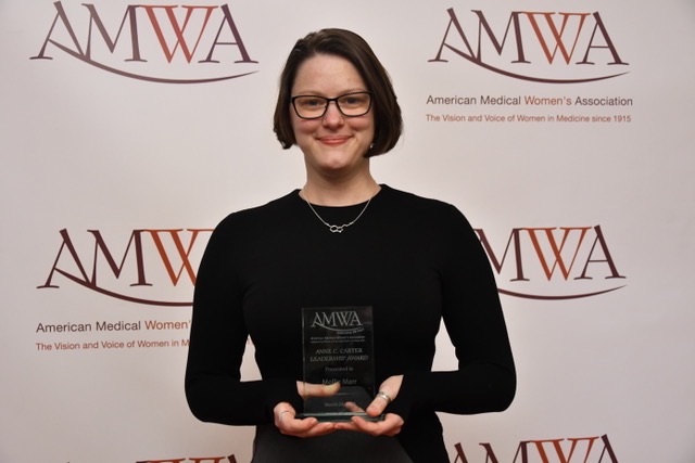 In the words of her nominator, Dr. Eliza Chin, “Mollie embodies so many of the ideals reflected in the Anne C. Carter leadership award. She has been a leader at both the local and national level. She has dedicated herself tirelessly to the cause of advancing AMWA both locally and nationally. She is passionate about AMWA initiatives in women’s health, sex and gender specific medicine, gender equity, and gender bias. Her academic strengths stem from expertise in both science and the arts, which align so well with AMWA’s recent initiatives. Few student leaders are so deserving of this award prestigious award. Mollie Marr is one such leader. Her record of service, advocacy, and academic merit speaks for itself, I cannot think of a better candidate.”